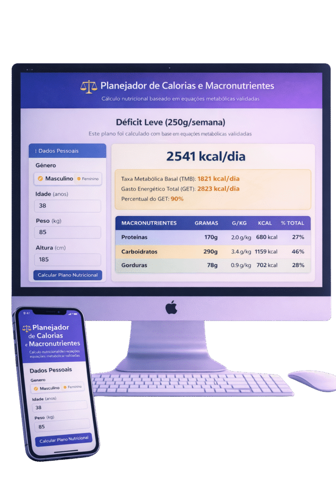Define suas calorias com precisão metabólica, considerando nível real de atividade física e objetivo nutricional
